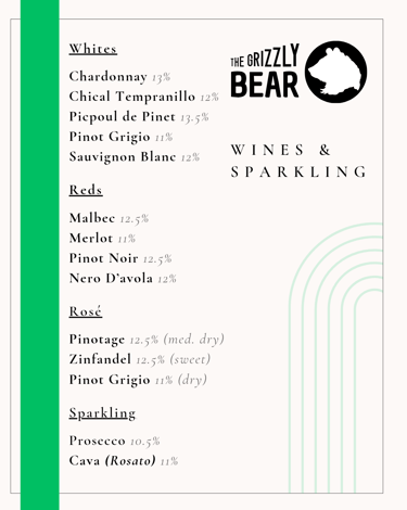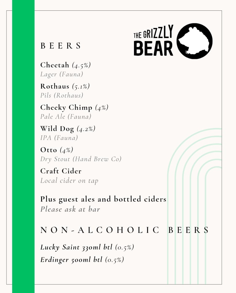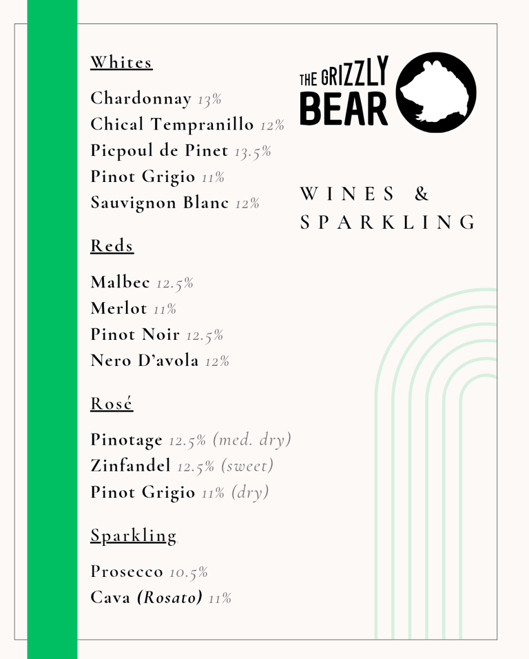 We may be small but we have a wide selection of wine, cocktails and a changing range of locally produced beers.