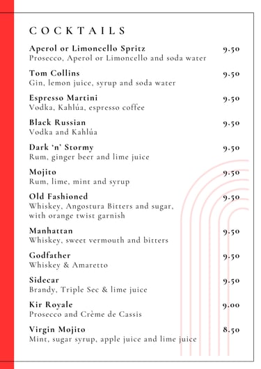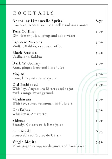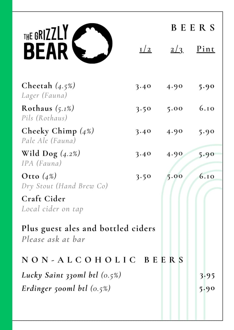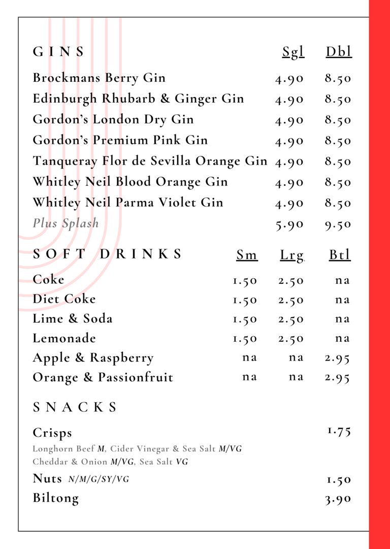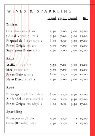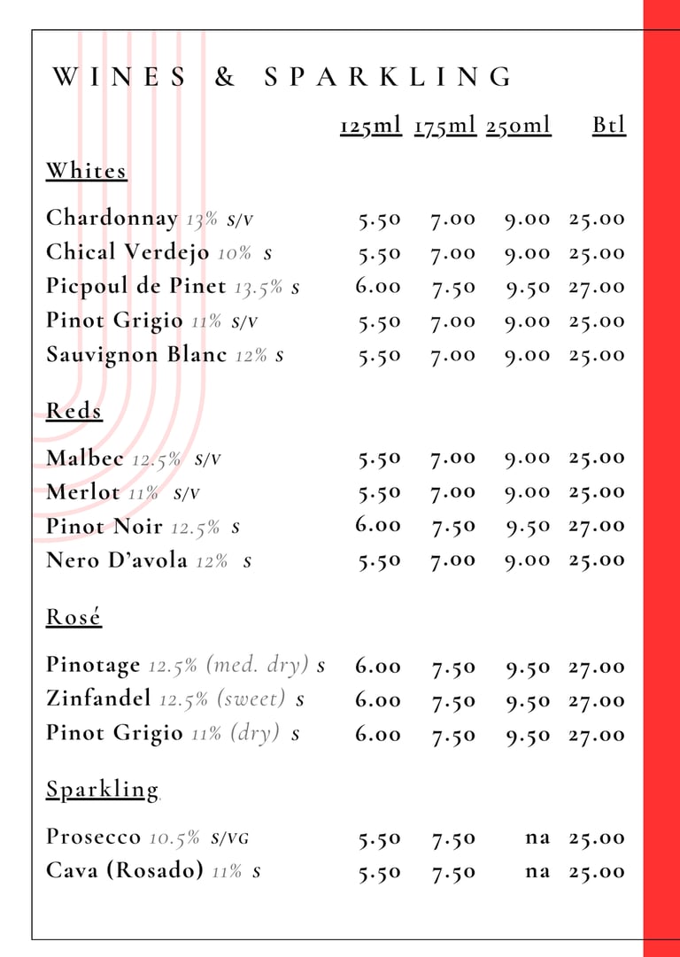 We may be small but we have a wide selection of wine, cocktails and a changing range of locally produced beers.