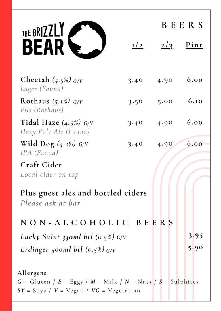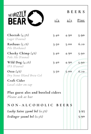 Enjoy our range of beers, with an ever changing range from our favourite local Sussex breweries.
