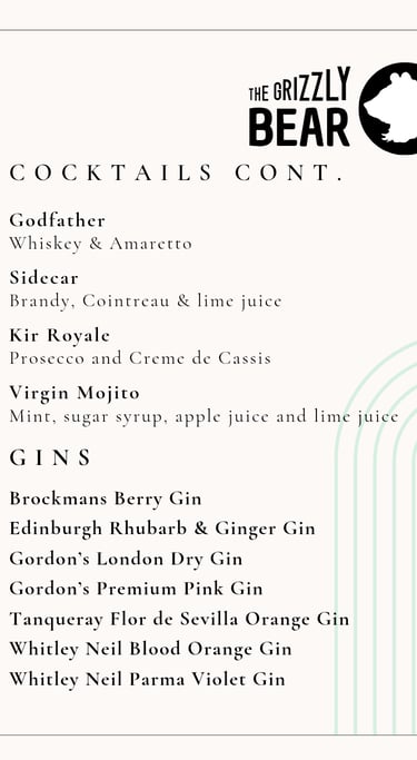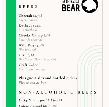 We may be small but we have a wide selection of wine, cocktails and a changing range of locally produced beers.